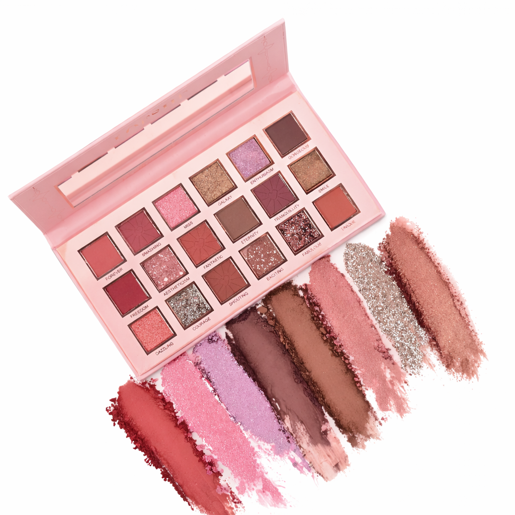 Paleta de 18 tonos versátiles con acabados mate, satinados y brillantes. Alta pigmentación y fácil difuminado para crear looks suaves o intensos en cualquier ocasión.